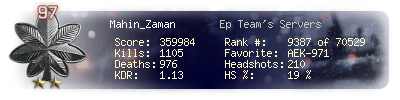 | Headshots | 210 | Suicides | 10 | Headshot / Kill | 19 % |