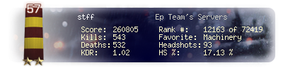 | Headshots | 93 | Suicides | 21 | Headshot / Kill | 17.13 % |