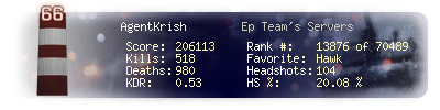 | Headshots | 104 | Suicides | 9 | Headshot / Kill | 20.08 % |