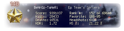 | Headshots | 6089 | Suicides | 289 | Headshot / Kill | 21.22 % |