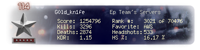 | Headshots | 107 | Suicides | 1 | Headshot / Kill | 14.02 % |