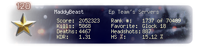 | Kills | 5868 | Deaths | 4467 | Kill / Death | 1.31 |