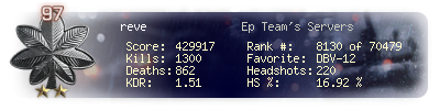 | Kills | 1300 | Deaths | 862 | Kill / Death | 1.51 |
