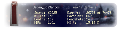 | Kill-streak | 8 | Death-streak | 11 | Team Kills | 0 |