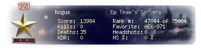 | Headshots | 0 | Suicides | 0 | Headshot / Kill | 0 % |
