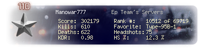 | Headshots | 75 | Suicides | 2 | Headshot / Kill | 12.3 % |