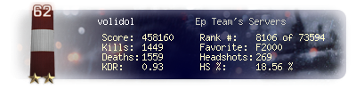 | Headshots | 269 | Suicides | 12 | Headshot / Kill | 18.56 % |