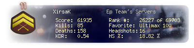 | Kills | 85 | Deaths | 158 | Kill / Death | 0.54 |