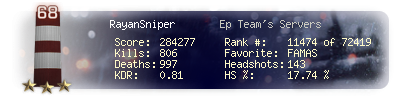 | Headshots | 143 | Suicides | 17 | Headshot / Kill | 17.74 % |