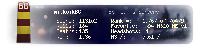 | Headshots | 14 | Suicides | 0 | Headshot / Kill | 7.61 % |