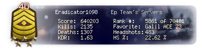 | Headshots | 483 | Suicides | 6 | Headshot / Kill | 22.62 % |