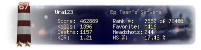 | Headshots | 244 | Suicides | 6 | Headshot / Kill | 17.48 % |