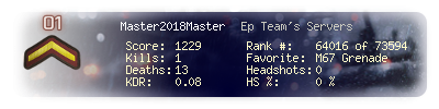 | Headshots | 0 | Suicides | 0 | Headshot / Kill | 0 % |