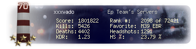 | Headshots | 1291 | Suicides | 40 | Headshot / Kill | 23.79 % |