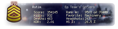 | Headshots | 247 | Suicides | 4 | Headshot / Kill | 26.5 % |