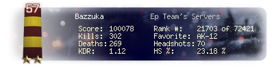 | Headshots | 70 | Suicides | 1 | Headshot / Kill | 23.18 % |