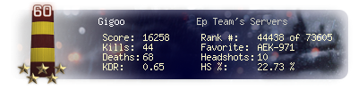 | Kills | 44 | Deaths | 68 | Kill / Death | 0.65 |