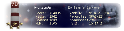 | Headshots | 294 | Suicides | 13 | Headshot / Kill | 15.14 % |