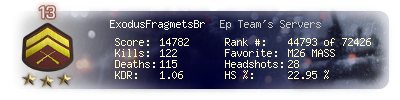 | Kill-streak | 5 | Death-streak | 12 | Team Kills | 0 |