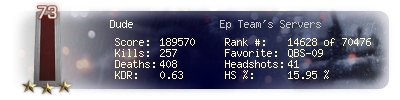 | Kill-streak | 7 | Death-streak | 13 | Team Kills | 3 |