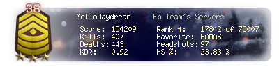 | Kills | 407 | Deaths | 443 | Kill / Death | 0.92 |