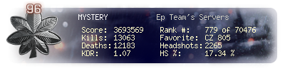 | Headshots | 520 | Suicides | 38 | Headshot / Kill | 16.87 % |