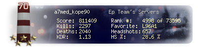 | Headshots | 657 | Suicides | 20 | Headshot / Kill | 28.6 % |