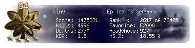 | Headshots | 40 | Suicides | 4 | Headshot / Kill | 16.19 % |