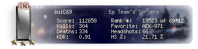 | Headshots | 66 | Suicides | 0 | Headshot / Kill | 21.71 % |