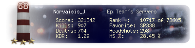 | Kills | 907 | Deaths | 704 | Kill / Death | 1.29 |