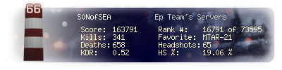 | Kill-streak | 8 | Death-streak | 26 | Team Kills | 0 |
