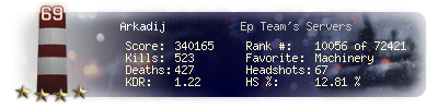 | Headshots | 67 | Suicides | 10 | Headshot / Kill | 12.81 % |