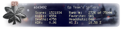 | Headshots | 846 | Suicides | 42 | Headshot / Kill | 18.58 % |