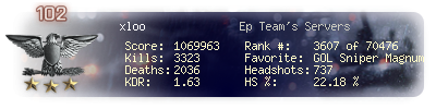 | Kills | 3323 | Deaths | 2036 | Kill / Death | 1.63 |