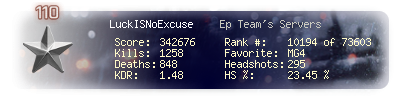 | Kills | 1258 | Deaths | 848 | Kill / Death | 1.48 |