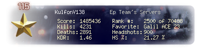 | Kills | 4231 | Deaths | 2891 | Kill / Death | 1.46 |