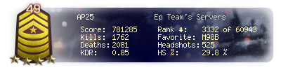 | Kills | 1762 | Deaths | 2081 | Kill / Death | 0.85 |