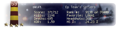 | Headshots | 268 | Suicides | 4 | Headshot / Kill | 24.23 % |