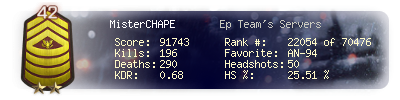 | Kill-streak | 2 | Death-streak | 9 | Team Kills | 0 |