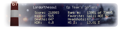| Headshots | 67 | Suicides | 6 | Headshot / Kill | 13.01 % |