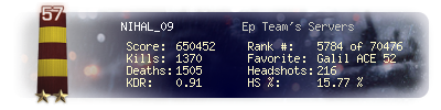 | Kills | 1370 | Deaths | 1505 | Kill / Death | 0.91 |