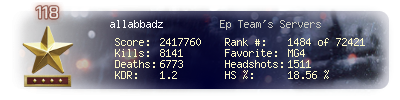 | Headshots | 1511 | Suicides | 72 | Headshot / Kill | 18.56 % |