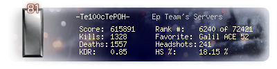 | Kill-streak | 8 | Death-streak | 19 | Team Kills | 1 |