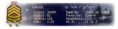 | Kills | 61 | Deaths | 116 | Kill / Death | 0.53 |