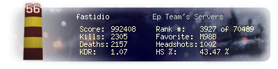 | Headshots | 1002 | Suicides | 10 | Headshot / Kill | 43.47 % |
