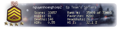 | Kills | 81 | Deaths | 146 | Kill / Death | 0.55 |