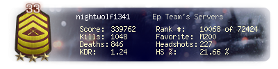 | Kills | 1048 | Deaths | 846 | Kill / Death | 1.24 |