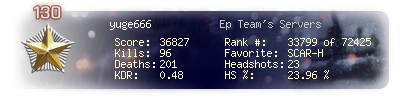| Kill-streak | 4 | Death-streak | 15 | Team Kills | 0 |