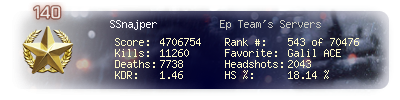 | Kills | 6127 | Deaths | 3309 | Kill / Death | 1.85 |