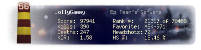 | Headshots | 72 | Suicides | 0 | Headshot / Kill | 18.46 % |